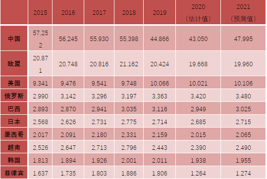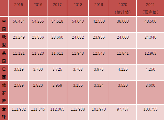 (说明:表格中数据源于美国农业部研究报告,其中中国数据与中国国家统计局发布数据有出入)